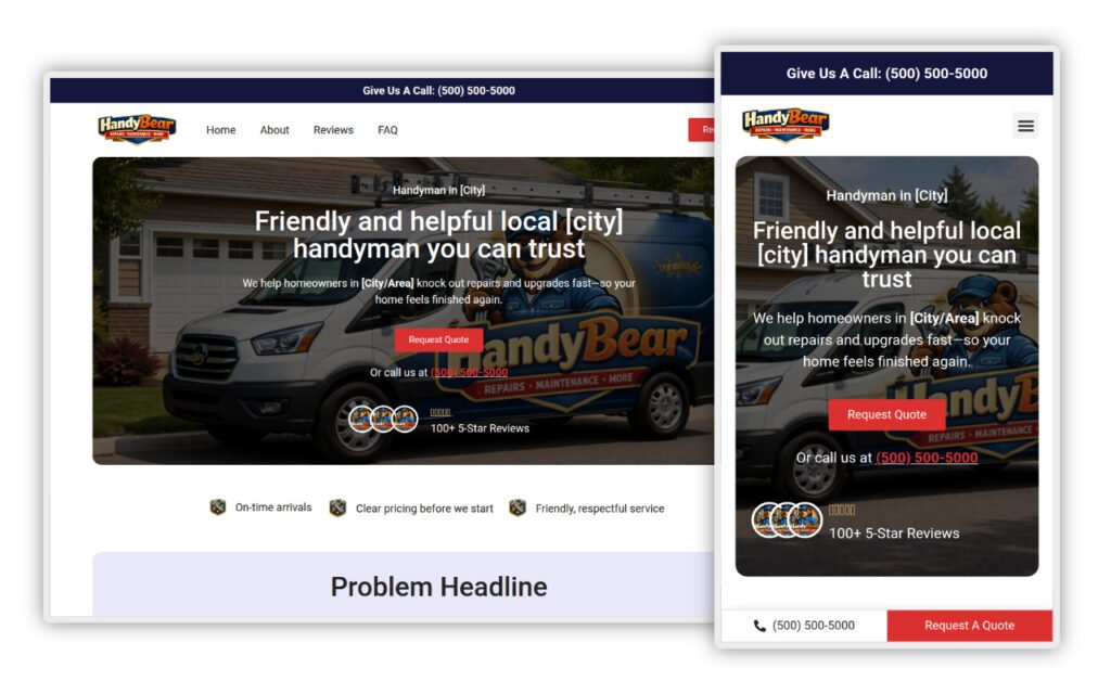 If you are looking for handyman website templates that have been tested and proven to work for almost any handyman business, this is for you.